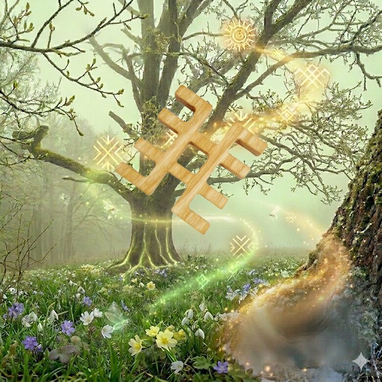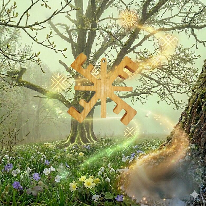Ūsiņš sign: Symbol of light's victory and awakening energy. Helps everything new to bloom.